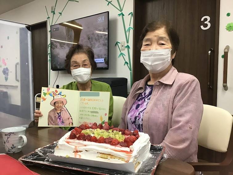7月の誕生会 2021/07/20 7月の誕生会の様子 輝く笑顔 毎月その月の誕生の方のお祝いをしています。 手作りのケーキと心ばかりのお祝いの品を用意しますがその日は皆様のお顔が一段と輝きます。 皆様も一度覗きに来てみませんか? デイサービスでの様子