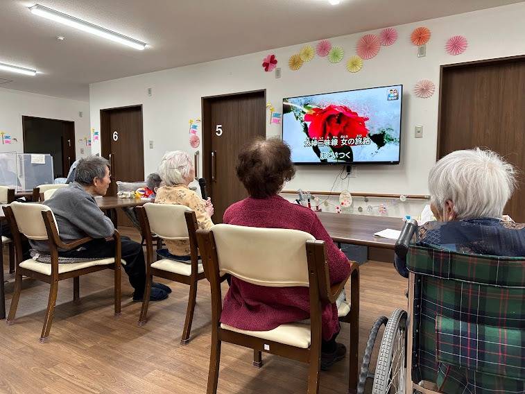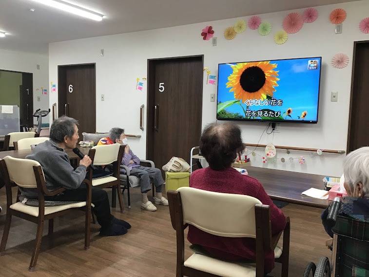 カラオケ 2023/04/14 カラオケ おばんです🌃 先日レクリエーションでカラオケをしました! いつも歌われる利用者様がお上手なので皆様真剣に聞かれております🎵 お写真でホール内の様子を感じとっていただけたら嬉しいです😊
