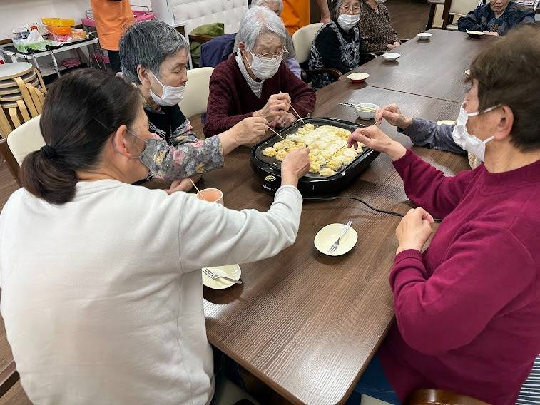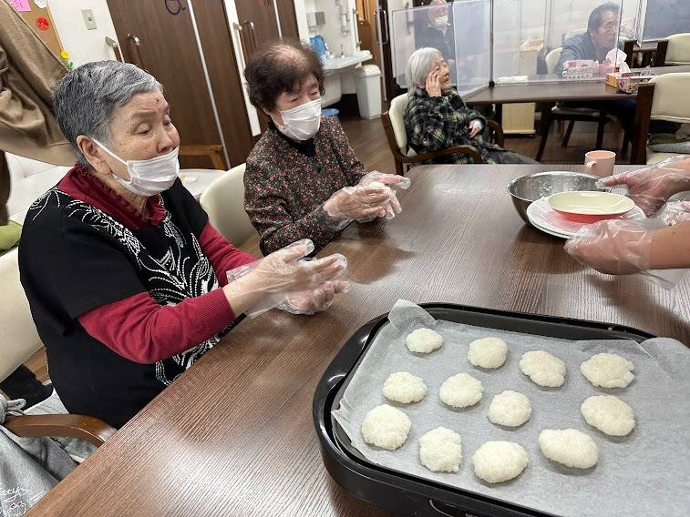 五平餅作り 2023/04/21 五平餅作り おばんです🌃 今日はご飯が沢山余り…急遽五平餅作りが行われました!! 初めての五平餅作りでしたが皆さんノリノリでご飯を潰し、丸めて並べて、味噌を付けて焼いてホール内にいい匂いが充満してきたら完成!!! とても美味しそうに召し上がられておりました☺ それではまた👋